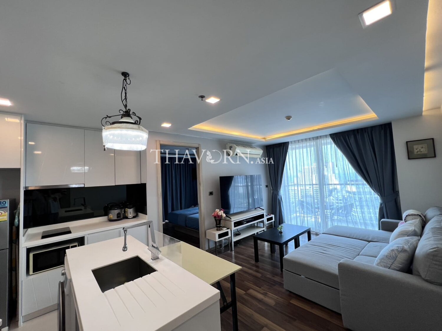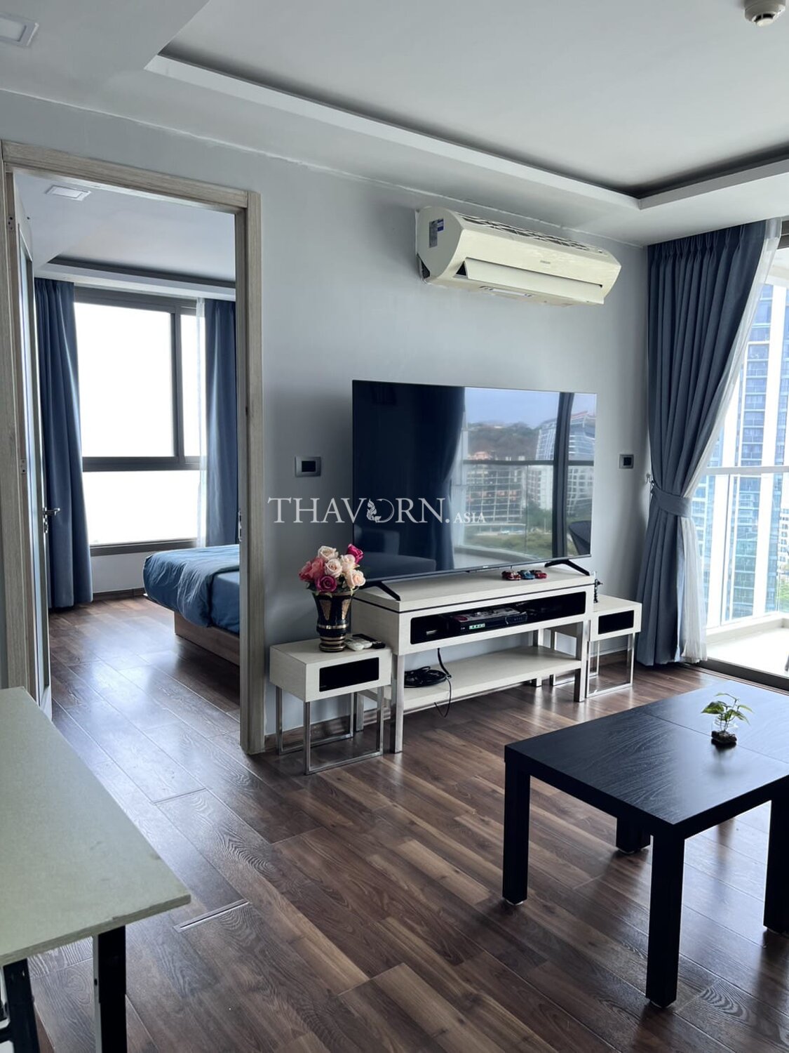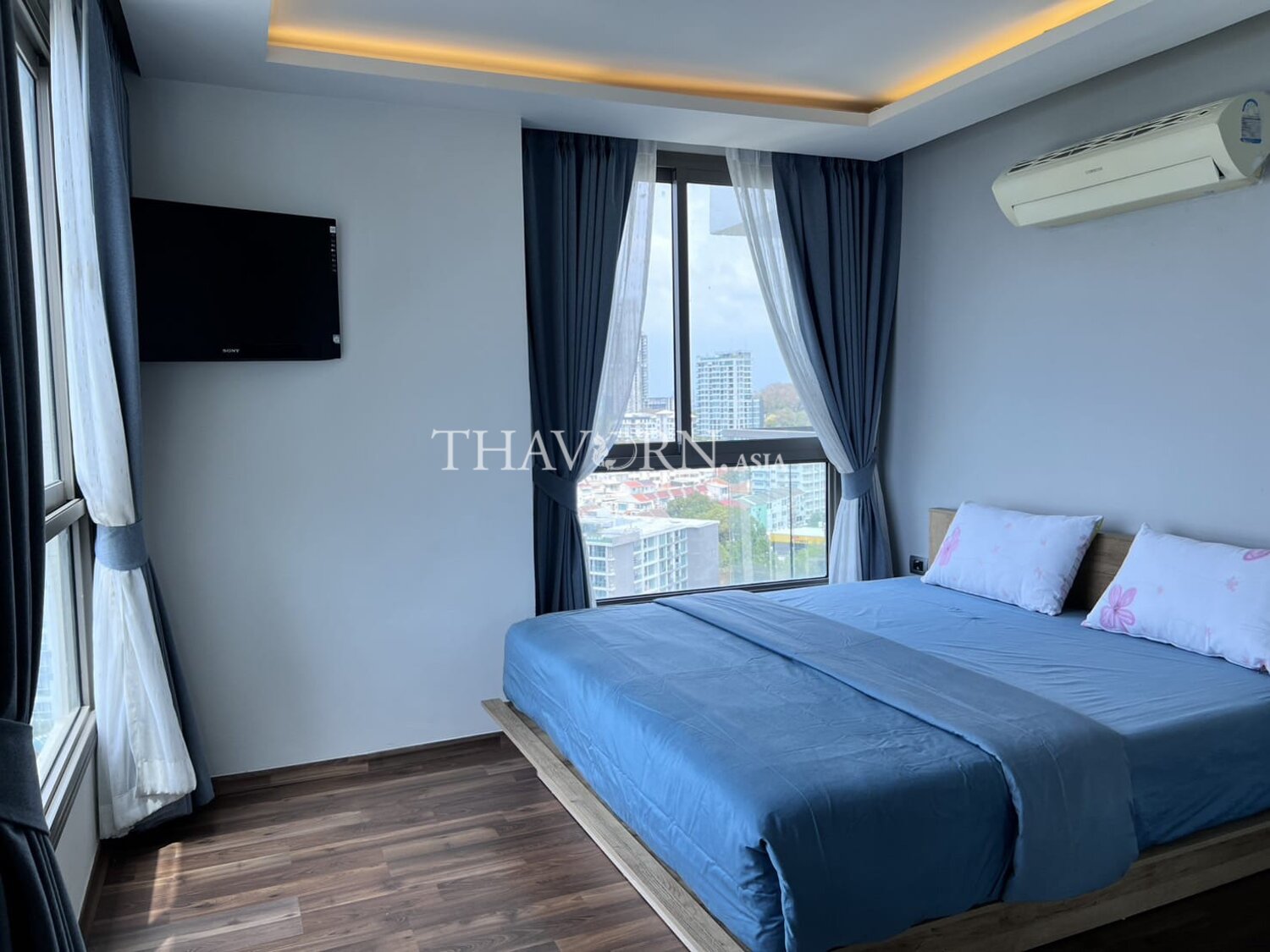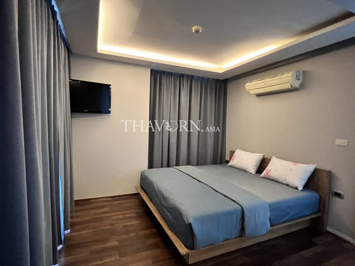 The flat is 47 m² with a thoughtful layout ideal for singles or couples. The building name and floor are part of the appeal for those seeking a compact, well-located rental in Pattaya.