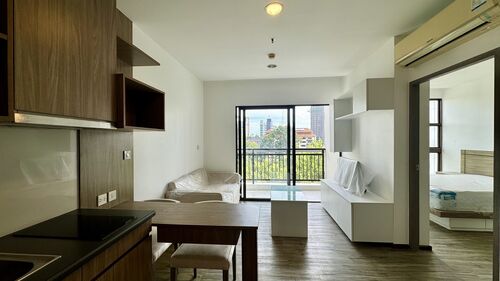 Discover the perfect blend of comfort and convenience with this stylish one-bedroom apartment in Treetops Pattaya. Located in the vibrant Tappraya neighborhood, this 35 sq.m. flat sits on the 8th floor of a modern 12-story building, offering you a great vantage point to enjoy city views and a refreshing breeze.
