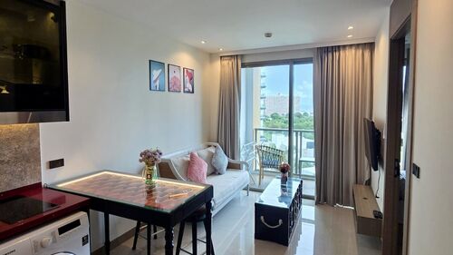 Experience vibrant city living in this stylish 1-bedroom apartment at Riviera Ocean Drive, located in the sought-after Jomtien neighborhood of Pattaya. Perched on the 10th floor of a modern 43-story development, this fully furnished flat offers 35.5 square meters of thoughtfully designed space—perfect for comfortable living or a smart investment.