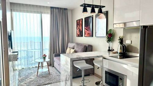 Discover your new home in the heart of Jomtien at The Riviera Jomtien, one of Pattaya’s most sought-after addresses. This inviting 1-bedroom flat offers 35 square meters of comfortable living space, perfectly positioned on the 11th floor of a stunning 46-story building.