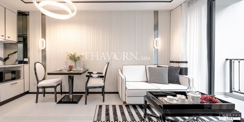 PTY Residence Sai 1 is a unique villa-style living space in Central Pattaya, close to the beach. It features a 27-storey residential tower with 327 units, various amenities like a gym, pool, and co-working space, and a design inspired by Miami’s 1970s coastal style.