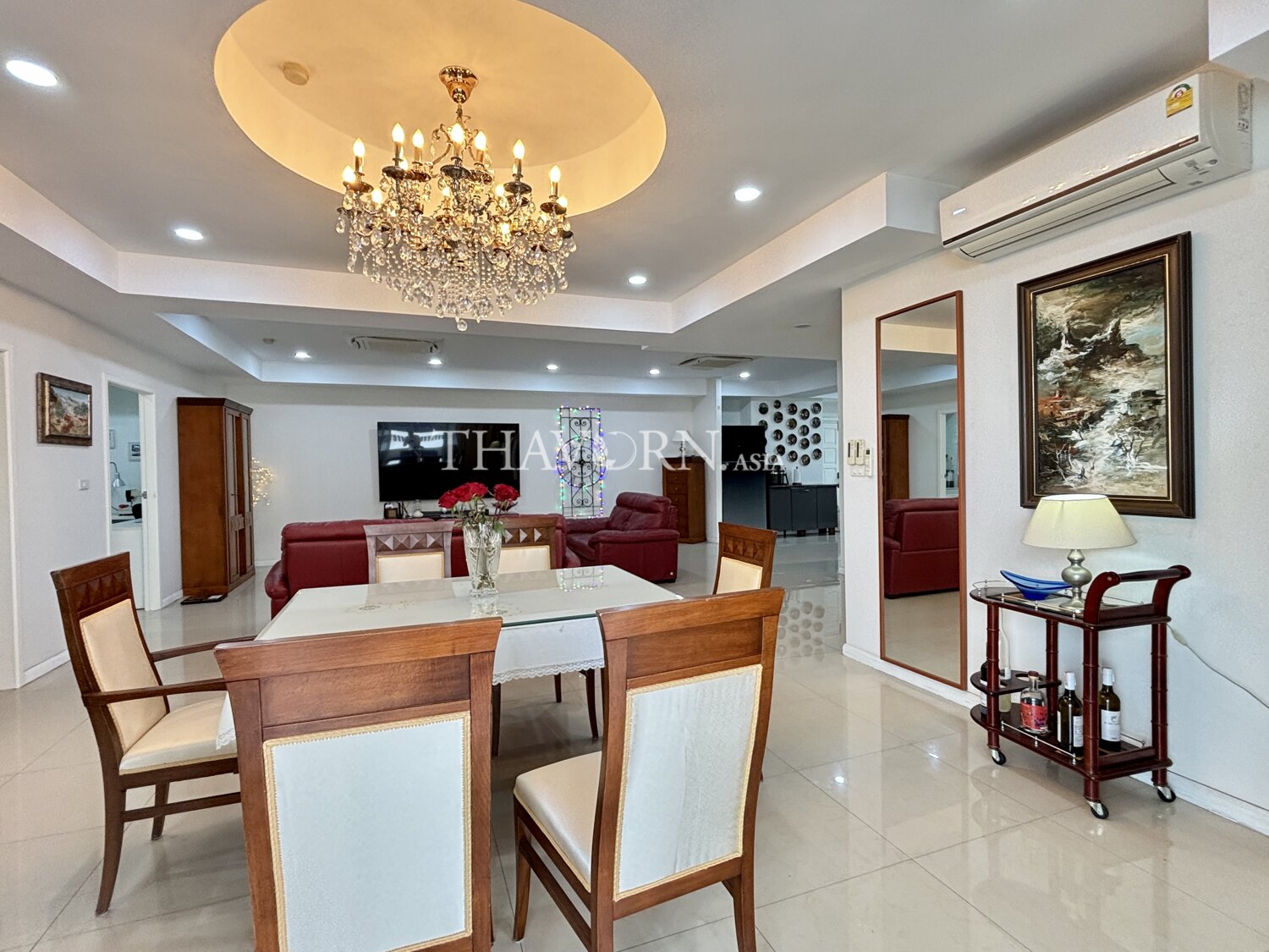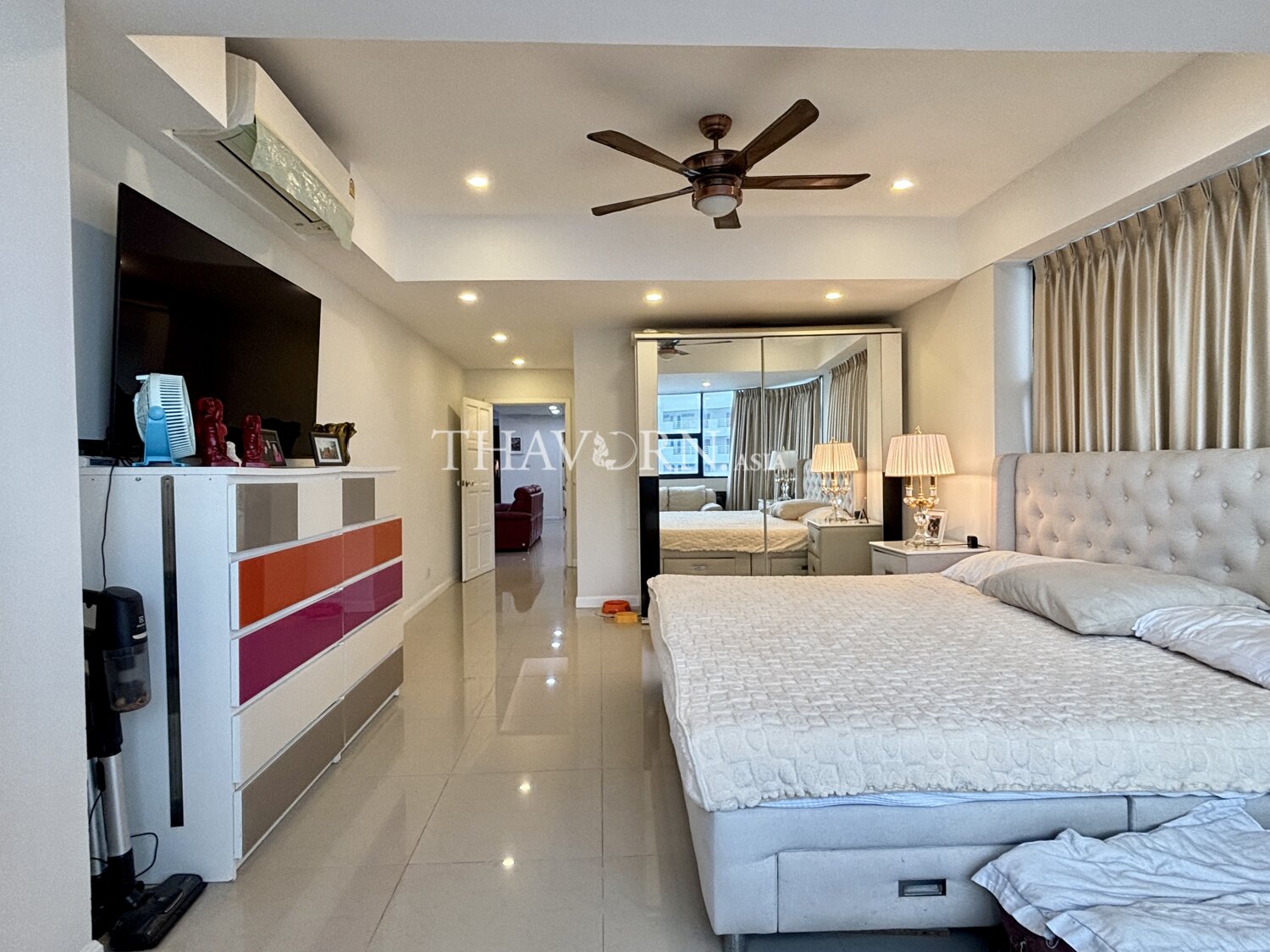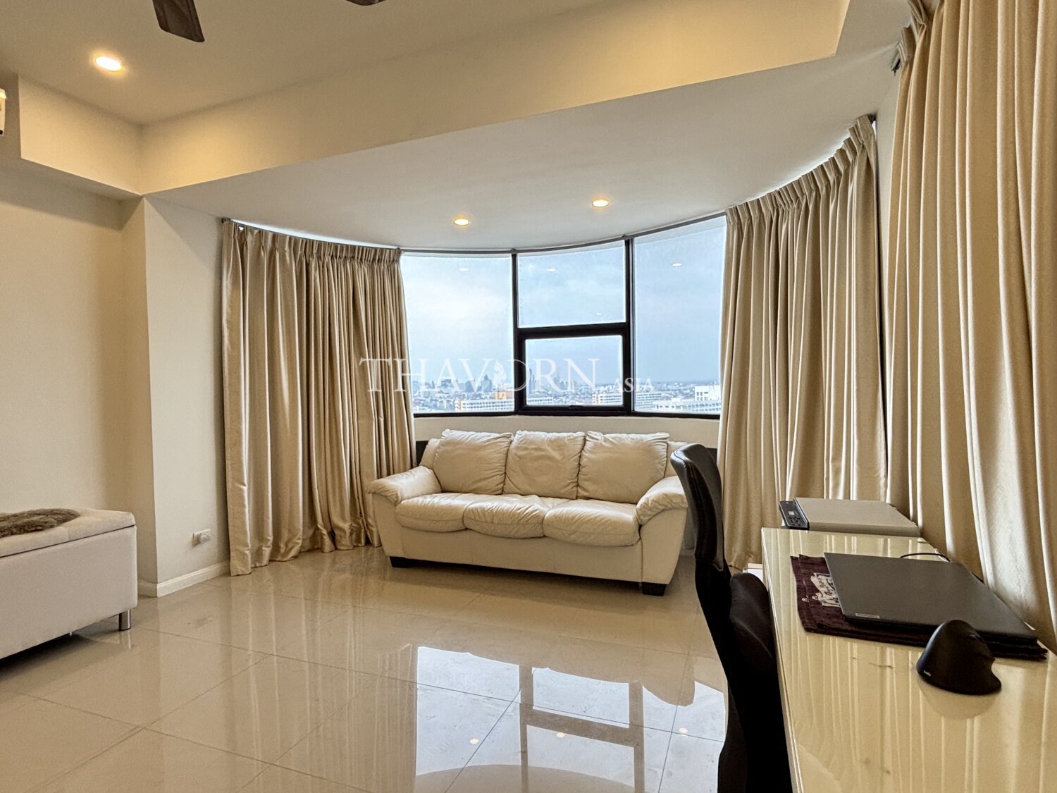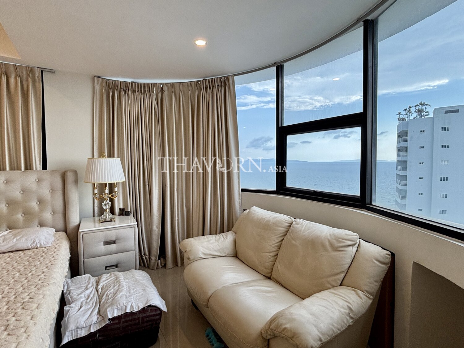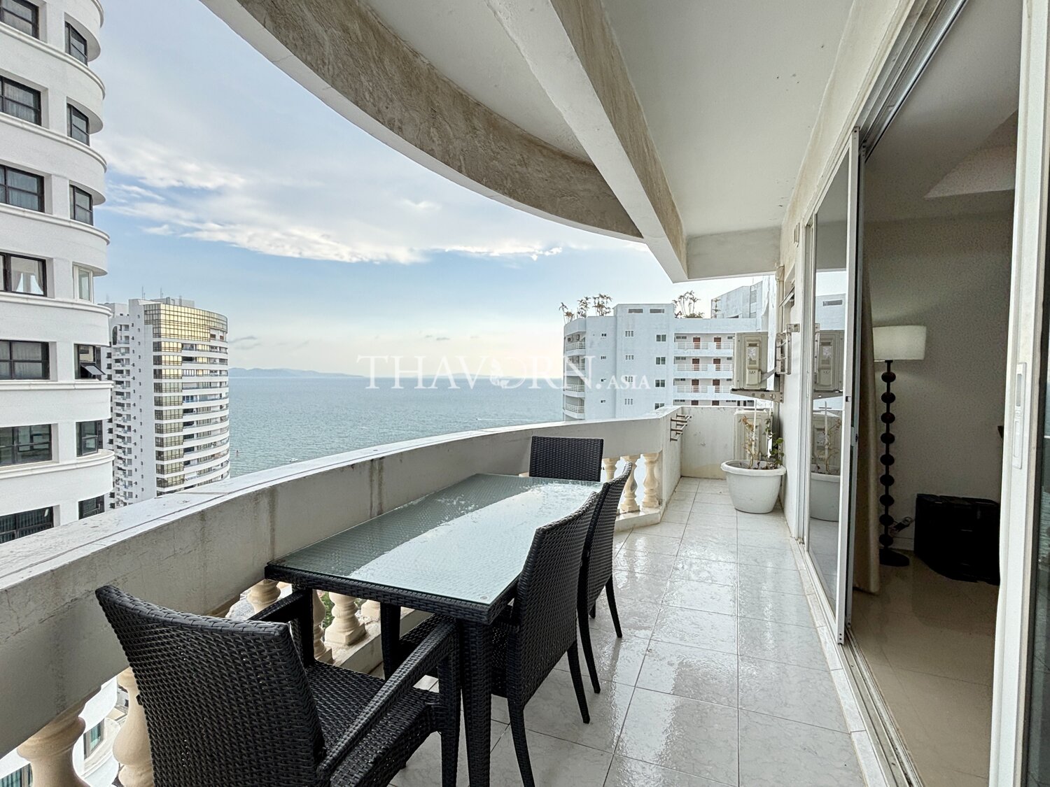 Experience elevated living in this spacious 3-bedroom apartment at the prestigious Jomtien Complex in Pattaya. Situated on the 24th floor of a modern high-rise, this 190 sqm flat offers breathtaking views and a sense of tranquility above the vibrant Jomtien neighborhood.
