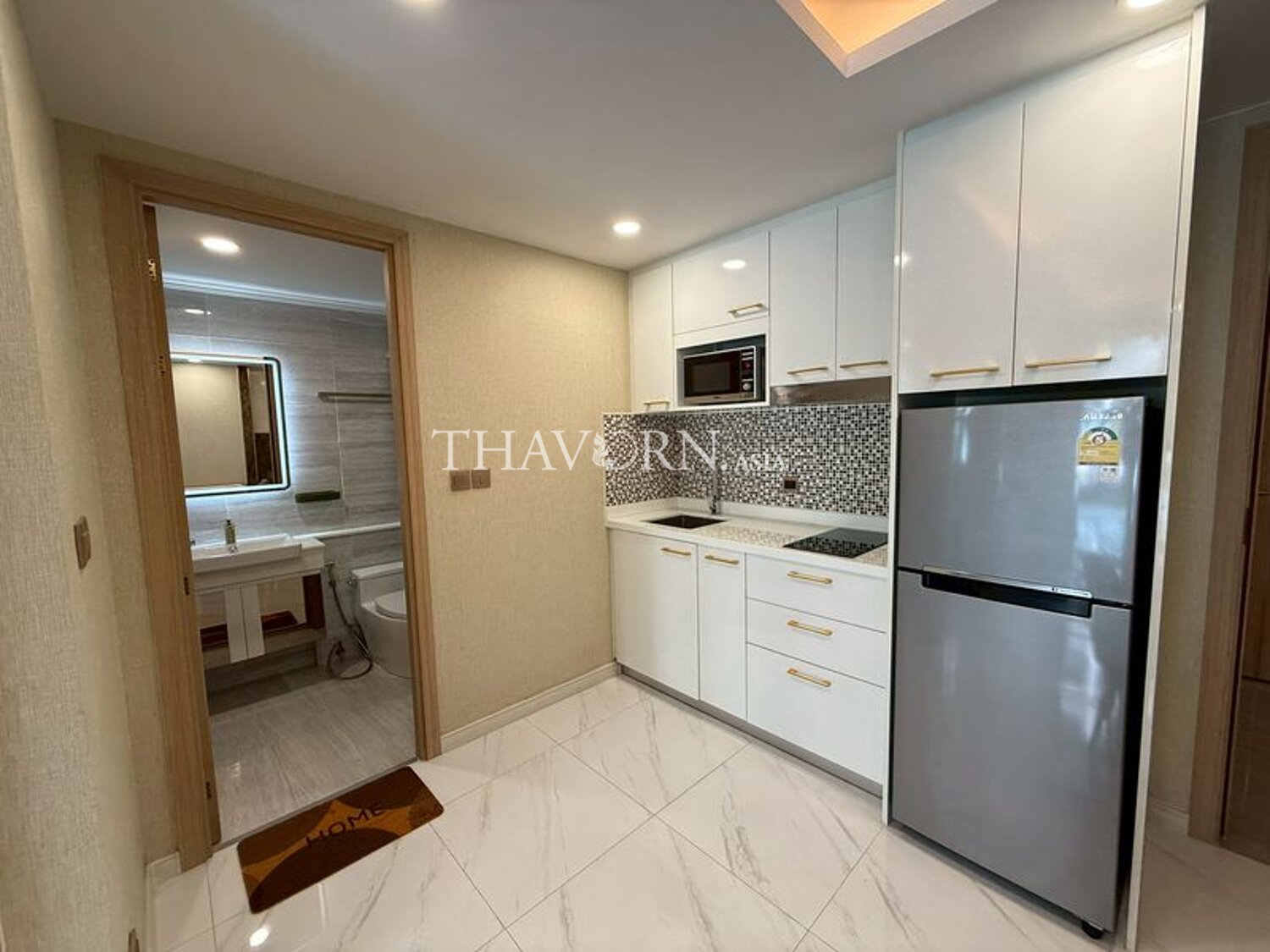 This fully furnished flat measures 34.2 m² and is situated on the 1st floor of an 8-storey building. The unit is available with foreign quota ownership, making purchase straightforward for non-Thai buyers.