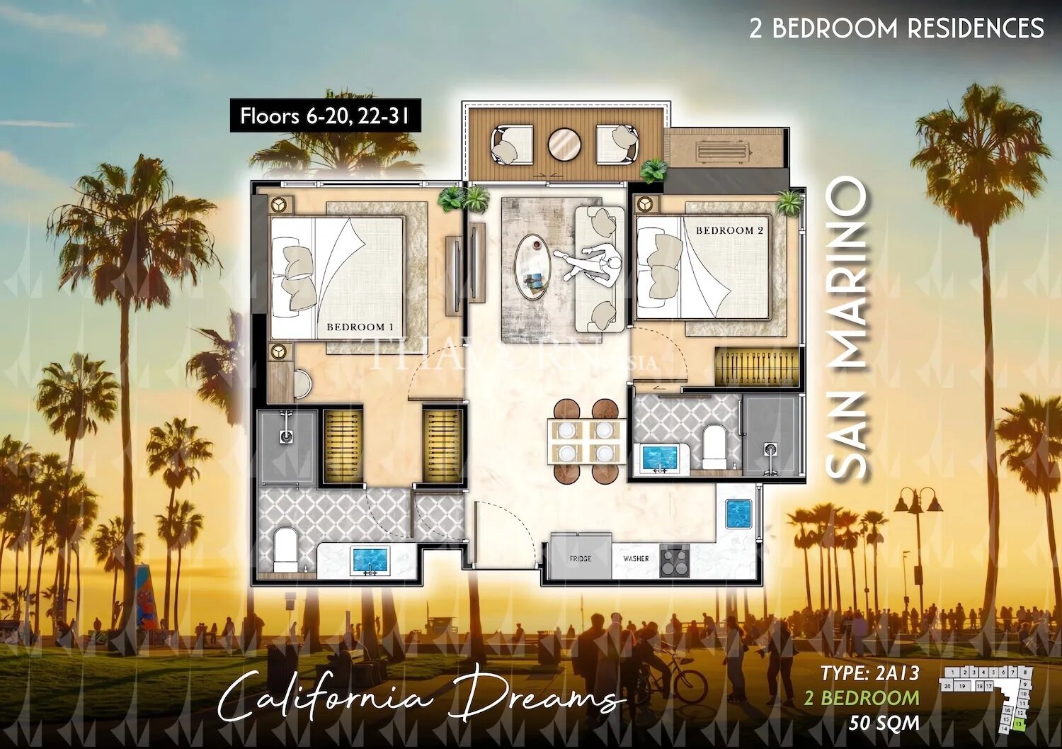 คอนโด 2 ห้องนอน ที่ Riviera Santa Monica Jomtien จอมเทียน พัทยา