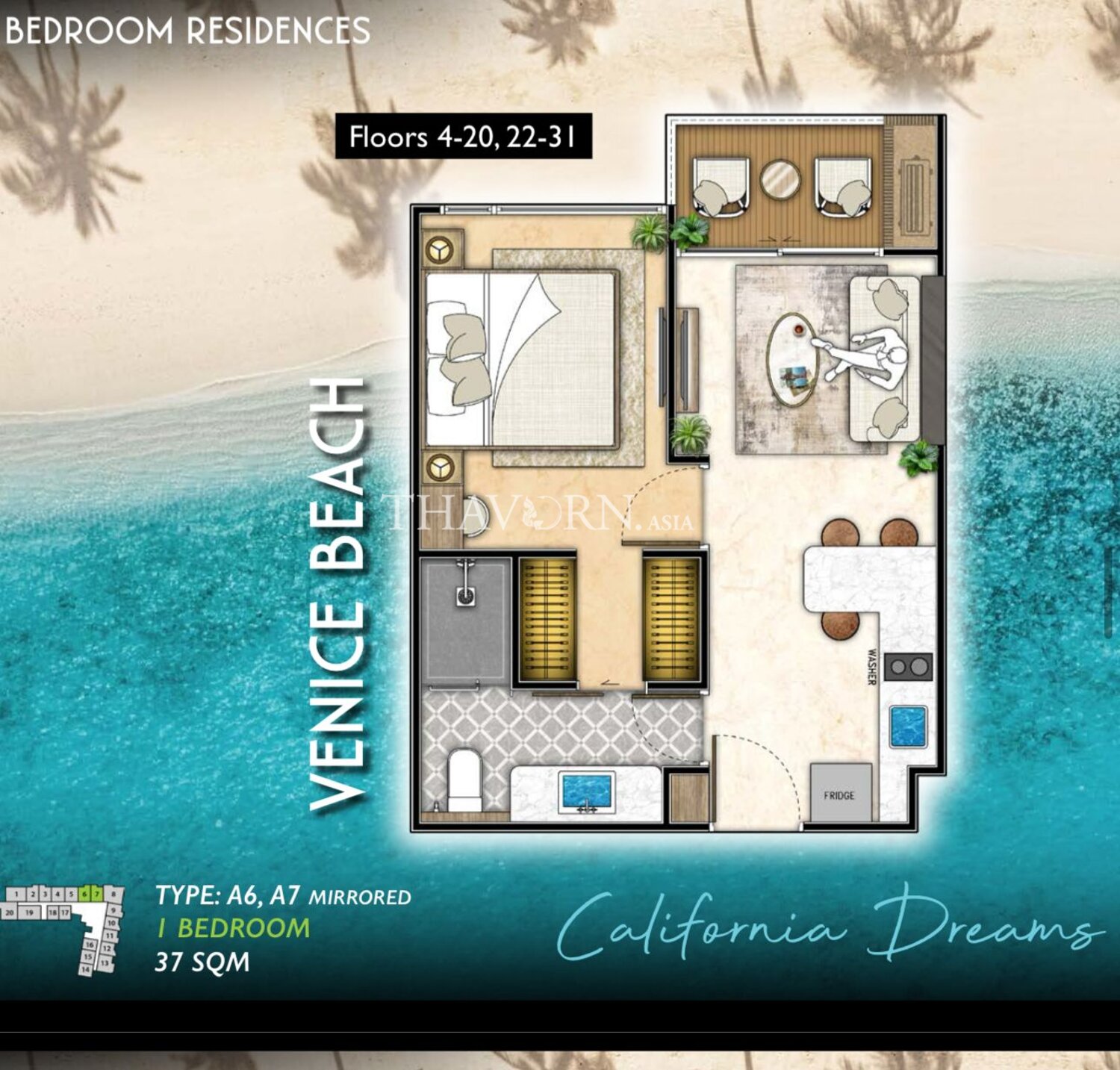 Discover a cozy one-bedroom flat in the new Riviera Santa Monica Jomtien development in Jomtien, Pattaya. This new-build project is scheduled for completion in 2028 and presents a high-floor living opportunity.