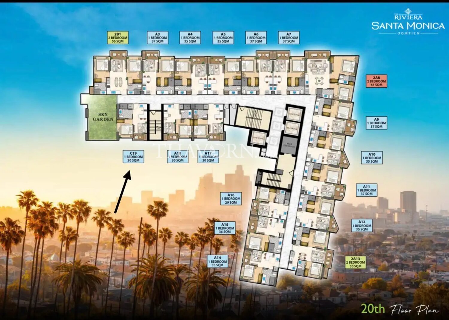 The Riviera Santa Monica in Jomtien offers luxury living with its 34-story high-rise developed by The Riviera Group, known for their award-winning projects. The condominium features 446 residences with stunning sea views and a variety of layouts, from one-bedroom units to a penthouse. Residents enjoy world-class amenities, including sky pools, a restaurant, a gym, and more. Strategically located for convenience, the project promises an unmatched lifestyle with the elegance of Santa Monica. Construction begins in October 2025, with completion in November 2028. Secure your luxury residence today.