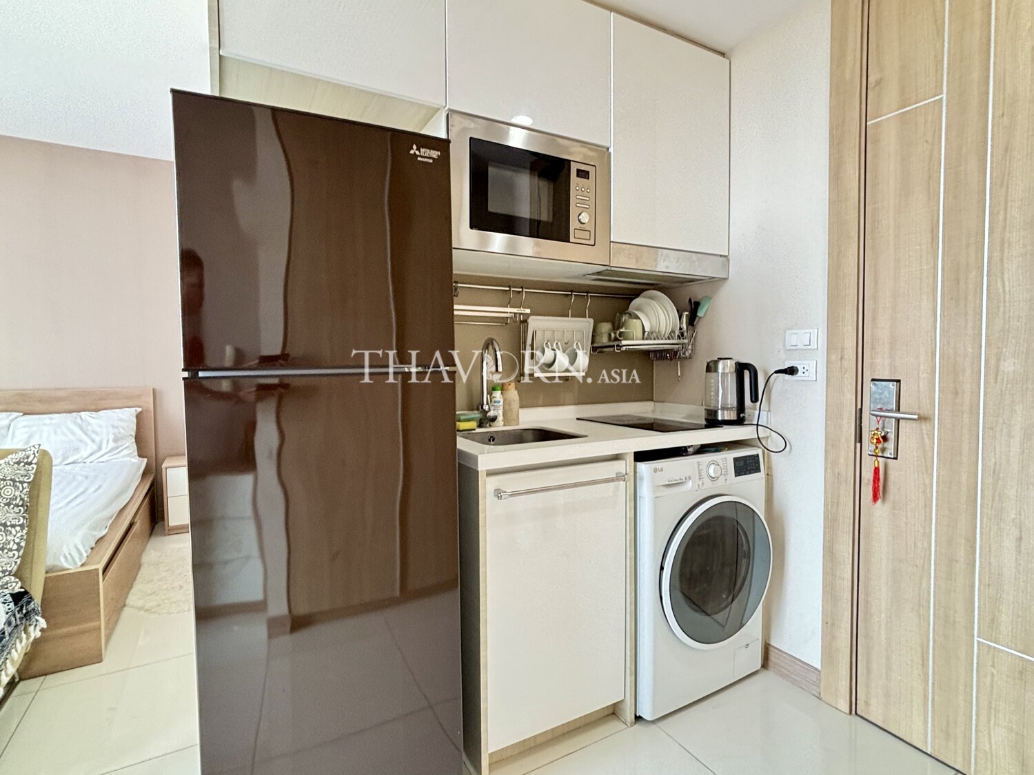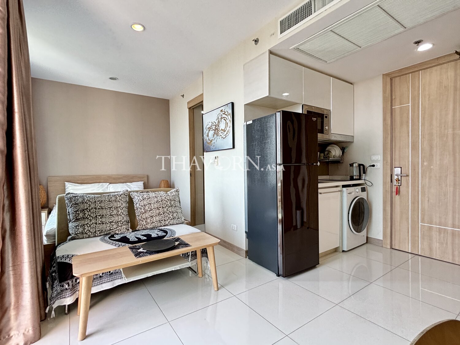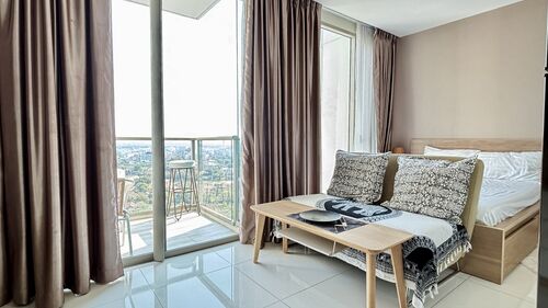 欢迎来到芭提雅著名的The Riviera Wongamat Beach公寓!这套27.3平方米的精致一居室位于第19层,视野开阔,尽享城市与海滩的美景。公寓配备全套家具,拎包即可入住,无需为装修和布置操心。无论是自住还是投资,这里都是理想之选。
