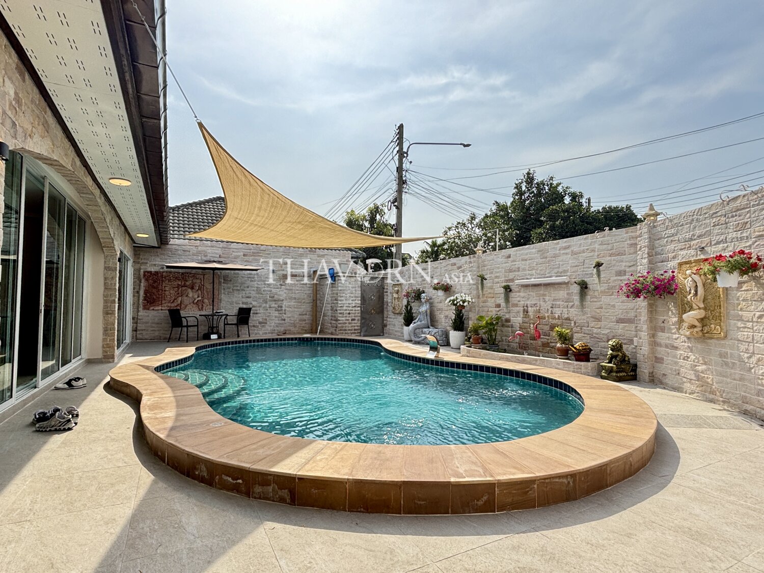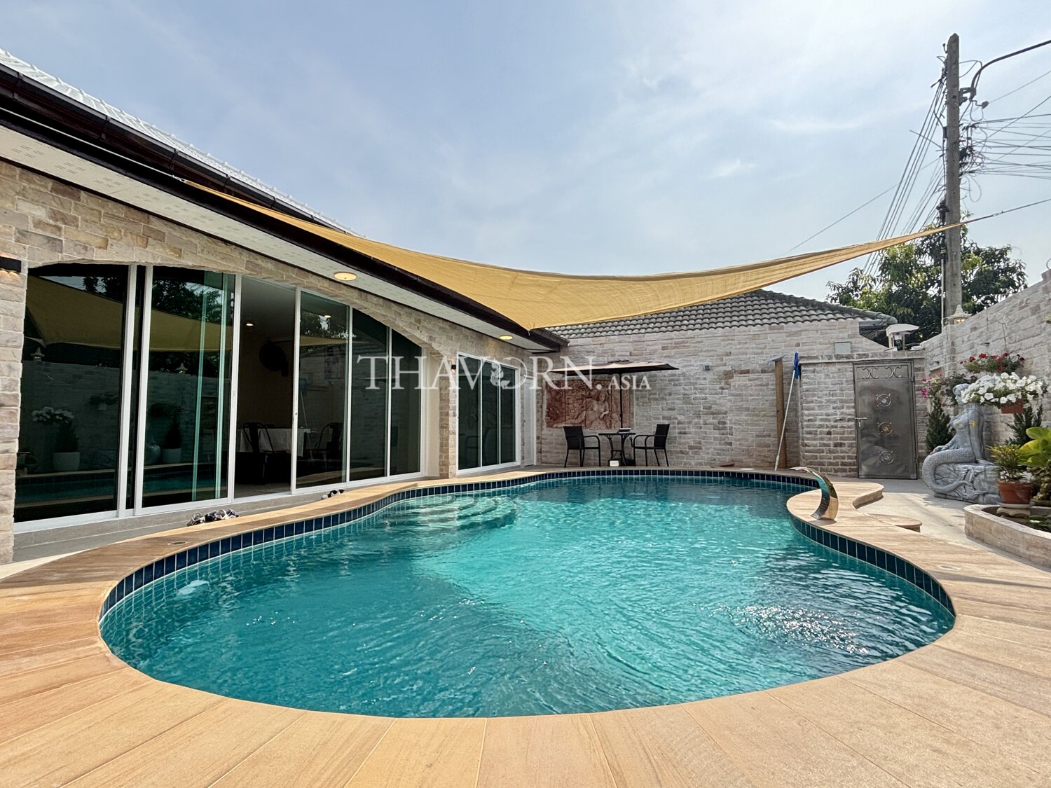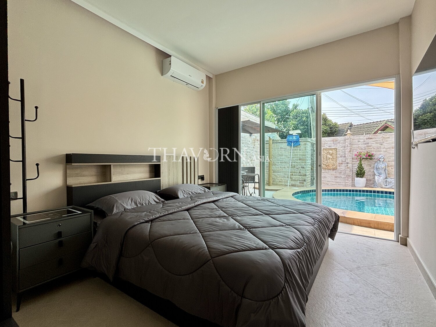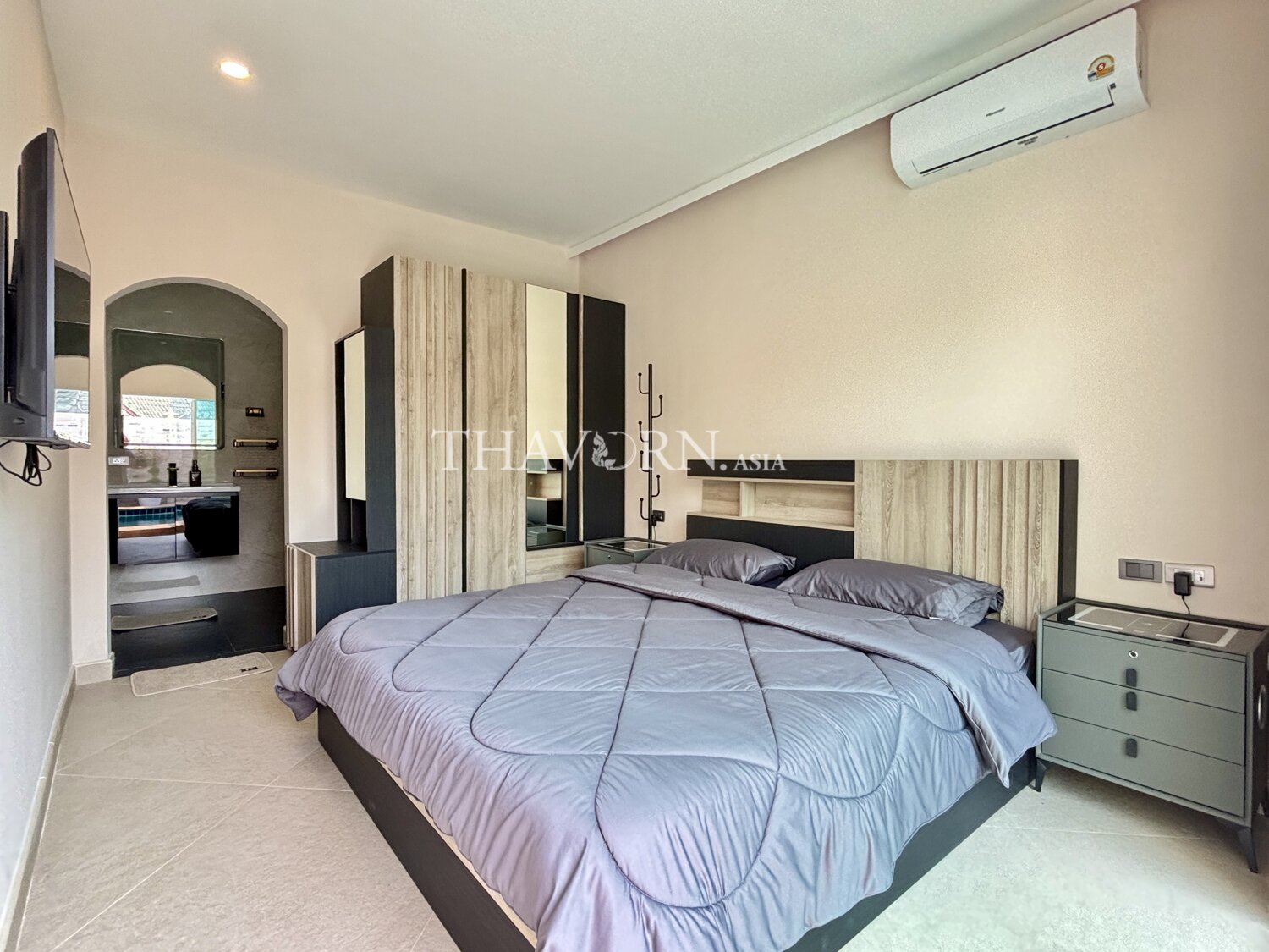 欢迎来到芭堤雅市中心这栋迷人的独立别墅!这座宽敞的家拥有4间舒适卧室,总面积达200平方米,坐落在260平方米的独立用地上,是家庭理想的居住选择。房屋为一层设计,布局合理,空间利用充分。每个房间都配备了齐全的家具,拎包即可入住,省心又方便。