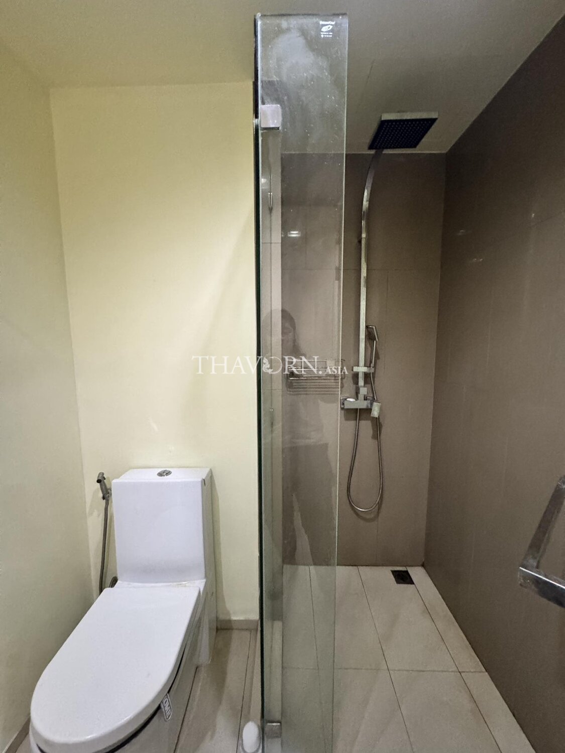 The fully furnished unit is 35 m² and sits on the 9th floor of a 46-storey tower. Ownership is under the Thai quota.