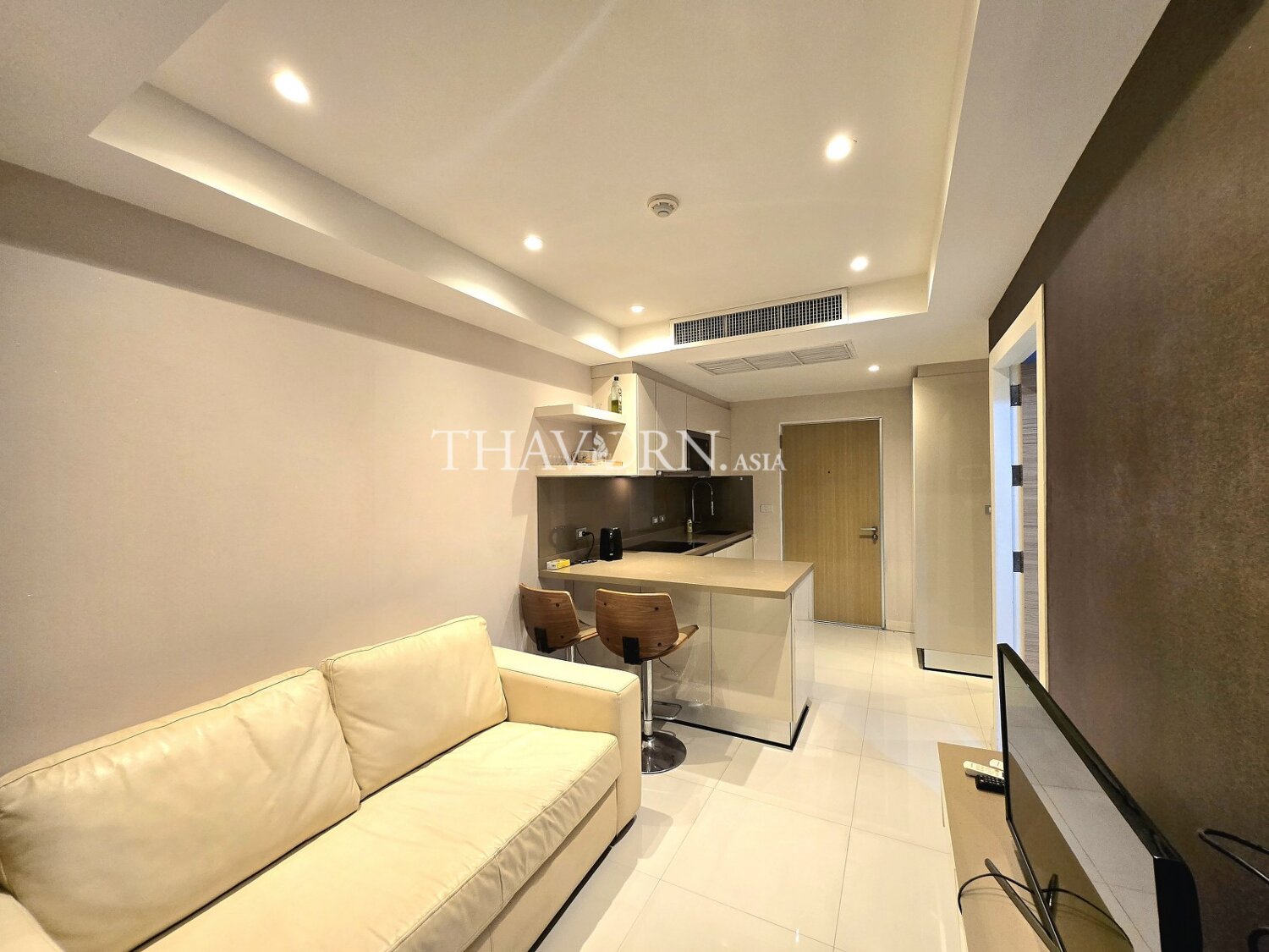 Every unit in the project comes fully furnished. And designed to have a space that is worthwhile. There is a balcony large enough to be a living area. It is also equipped with a large glass door. To let in the warm morning sunlight, the kitchen has an extractor hood, a sink and a fire alarm system. for safety The living room area has a high ceiling. Installation of ceiling lights and air conditioners to look modern and simple to create an atmosphere of relaxation truly to you