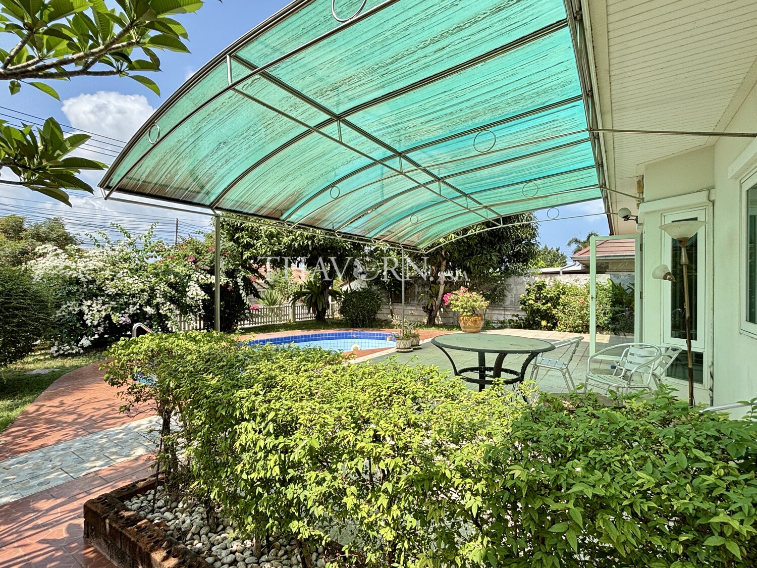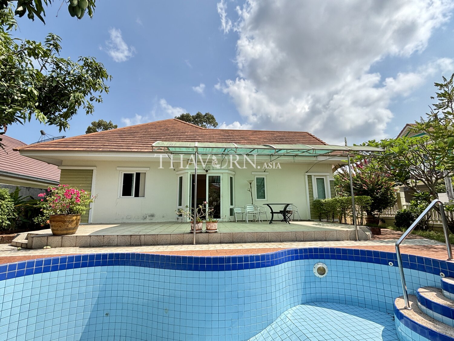 บ้านชั้นเดียวให้บรรยากาศอบอุ่นและเป็นส่วนตัว ตั้งอยู่ในชุมชน Baan Koonsuk 2 ย่านบางเสร่ เมืองพัทยา เหมาะสำหรับครอบครัวที่มองหาพื้นที่พักอาศัยที่ลงตัว.